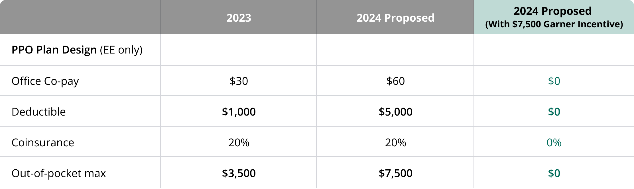 - A co-pay plan offering $0 out-of-pocket costs when employees use Garner-recommended providers